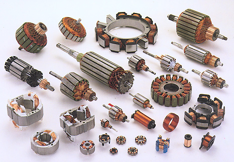 Асинхронные двигатели в основном различаются устройством ротора, который бывает двух типов: фазный или короткозамкнутый. Обмотка короткозамкнутого ротора асинхронного двигателя выполняется на цилиндре из медных стержней и называется "беличьей клеткой". Торцевые концы стержней замыкают металлическими кольцами. Пакет ротора набирают из электротехнической стали. В двигателях меньшей мощности стержни заливают алюминием. Фазный ротор и статор имеют трехфазную обмотку. Фазы обмотки соединяют звездой или треугольником и ее свободные концы выводят на изолированные контактные кольца.